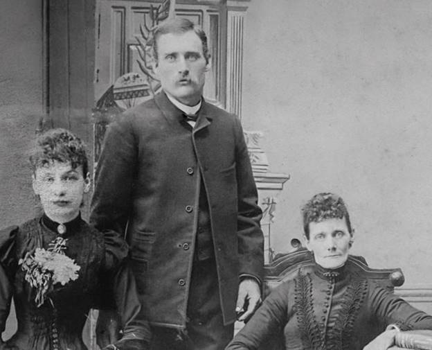 A contact on Ancestry.com, discovered through the DNA of my wife, Ann, advised that he thought the unknown man was Edward Rechenbach, who married Georgia “Georgie” Brinkman. I have a much later group photo with the name written on the margin.